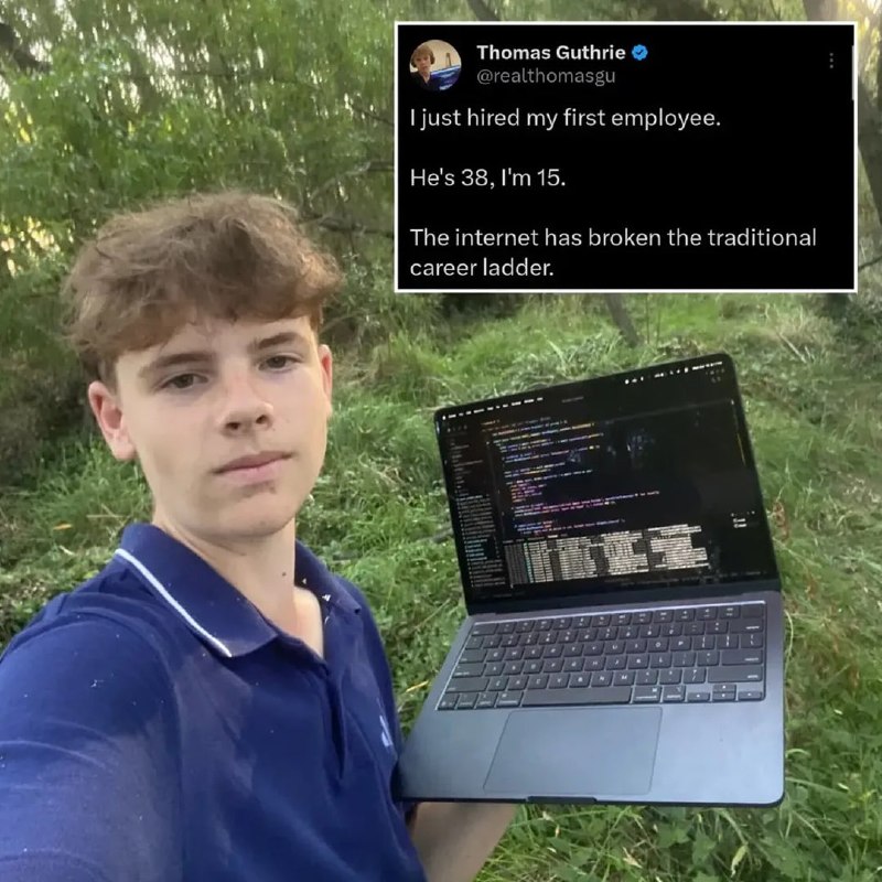 В глобальной паутине стремительно набирает популярность история 15-летнего гения кода из Сан-Франциско. Этот юный стартапер взял да и нанял в свой передовой ИИ-проект 38-летнего специалиста (оригинал истории по ссылке). Как философски заметил сам парень: всемирная сеть окончательно стерла в порошок традиционную карьерную лестницу. Теперь это скорее карьерный скоростной лифт, а то и батут! ♂️