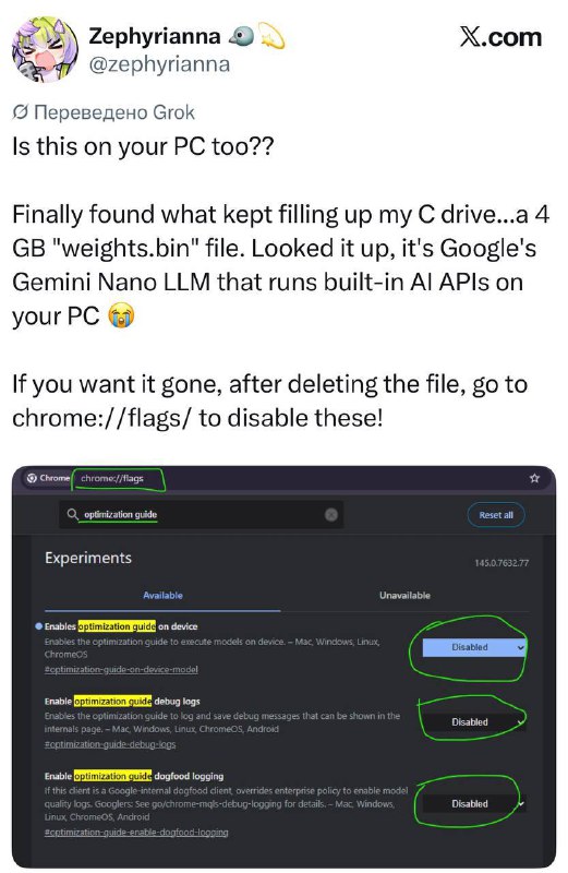 Google Chrome ВОРУЕТ место на вашем компьютере — браузер по-тихому https://x.com/zephyrianna/status/2024962946598949214?s=46 локальную версию Gemini.