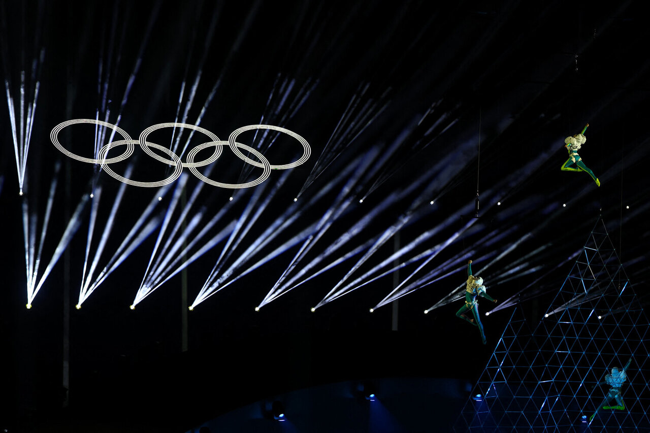Церемония началась с небольшого фильма. Затем зрители увидели театрализованное представление, световое шоу с олимпийским девизом «Быстрее, выше, сильнее — вместе», различные музыкальные, танцевальные и акробатические номера, а также парад спортсменов-участников. Российские атлеты, которые выступали на Играх в нейтральном статусе, также получили приглашения на церемонию и прошли в колонне вместе со всеми. Всего, по заявлениям организаторов, в параде приняли участие около 1,5 тыс. спортсменов.