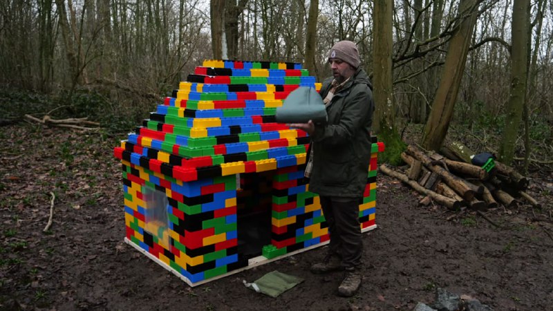 Британский блогер Kent Survival https://www.youtube.com/watch?v=X9mPxBWXJ9g проверить, подойдёт ли игрушечный материал для жизни на природе. Он взял десять коробок конструктора, закинул их в грузовик и уехал в глушь.