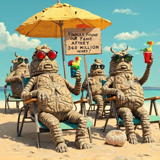 Вы когда-нибудь задумывались, глядя на свои «старые» джинсы двухлетней давности, что такое настоящая древность? 🧐 А вот британские палеонтологи не просто задумались, но и, поправив пенсне, выкопали ответ прямо из-под ног. Представьте себе: Англия, туманы, овсянка, и вдруг — бац! — привет из эпохи, когда даже динозавры еще не планировали появляться на свет, считая это моветоном. Речь идет о находке окаменелостей гониатитов, которым стукнуло, ни много ни мало, 340 миллионов лет. Это вам не бабушкин сервиз в серванте, это — настоящая «капсула времени», доставленная нам без помощи почты (что, впрочем, объясняет, почему она шла так долго).